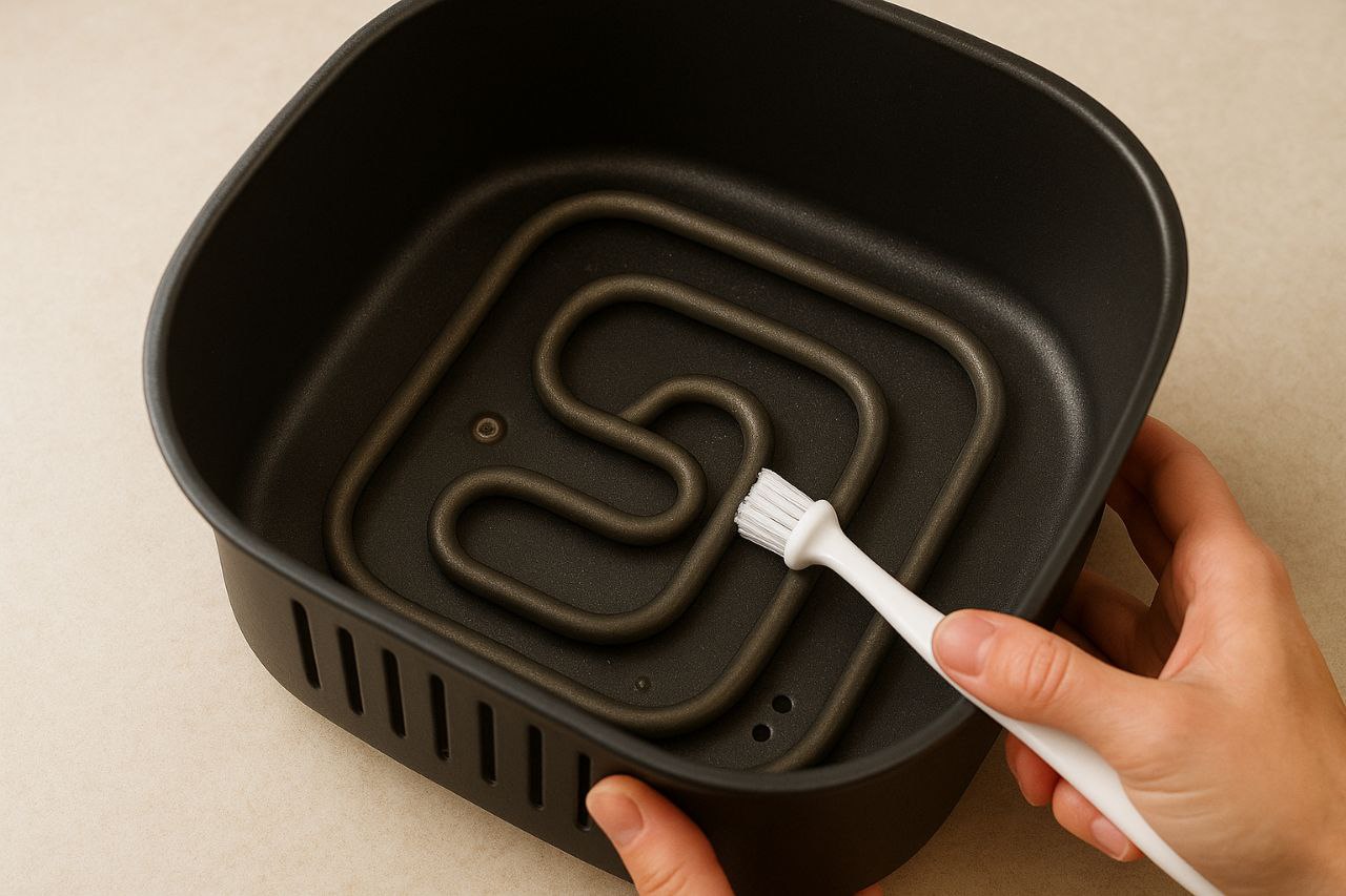 اگر به المنت (اون لولههای فلزی مارپیچ) غذا چسبیده، با یک مسواک نرم یا فرچه کوچک تمیزش کنید.