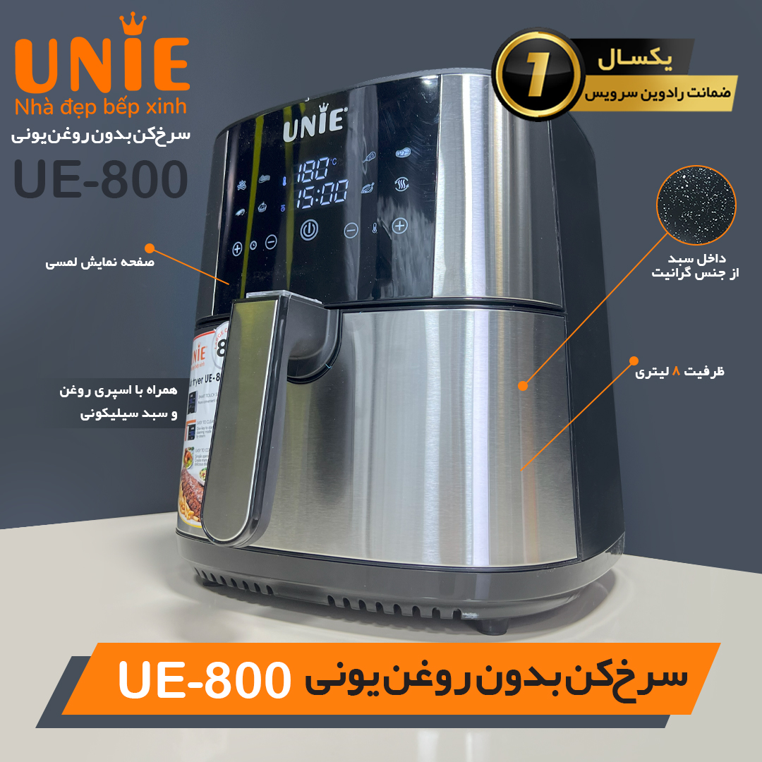 ایده خیلی سادهست: به جای غرق کردن غذا تو روغن، از چرخش هوای خیلی داغ برای پخت و ترد شدن استفاده میکنی. این روش، بافت بیرونی کریسپی و طلایی و داخل نرم رو بدون یه قطره روغن بهت میده. من حسابی تحقیق کردم تا بهترین گزینه رو پیدا کنم و نهایتاً، سرخکن یونی (Unie) مدل UE 800 رو خریدم و به آشپزخونه آوردم.